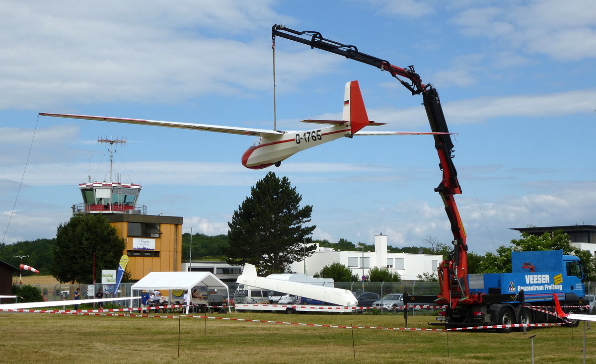 Freiburg, Segelflugzeug D-1765 am Haken, Flugplatzfest Juni 2017