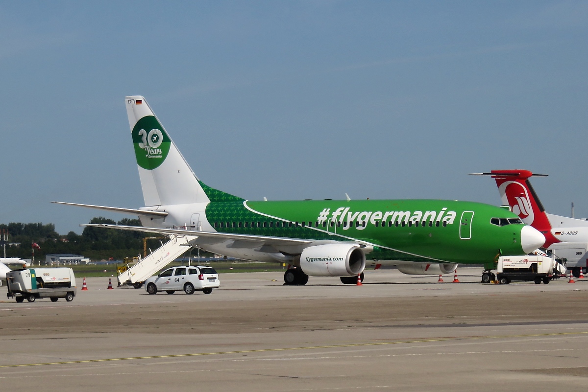 Germania D-AGER, Boeing 737 Next Gen, auf dem Flugfeld C in Düsseldorf, 21.7.17