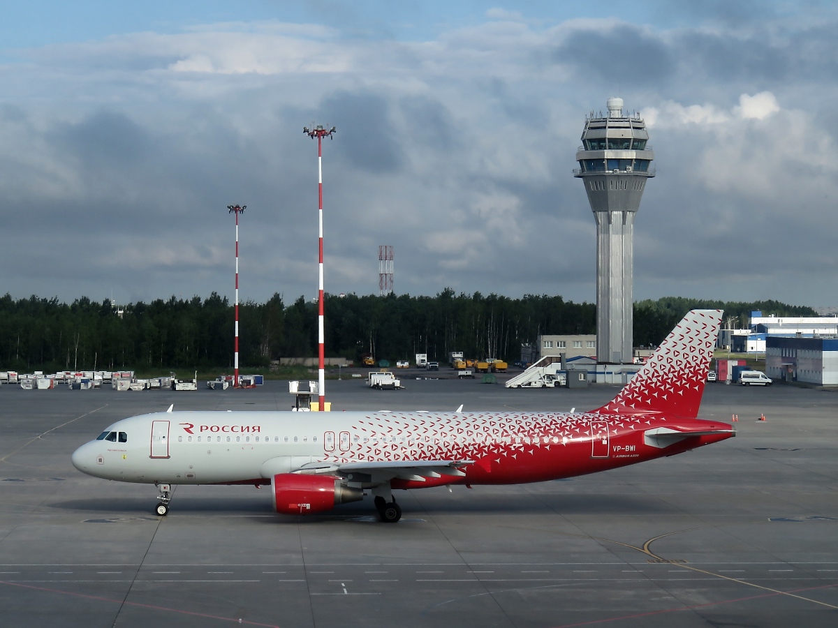 Rossiya - Russian Airlines, VP-BWI, Airbus A320, vor dem Tower von Pulkovo (LED), 21.7.17