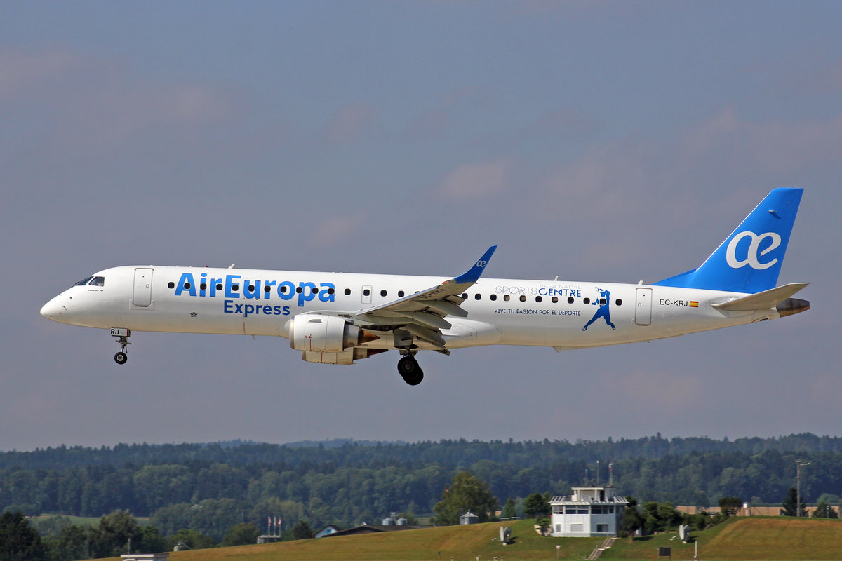 Air Europa Express (Operated by Aero Nova), EC-KRJ, Embraer ERJ-195LR, Mit "Rafa Nadal Sports Center" Sticker, 21.Juli 2017, ZRH Zürich, Switzerland.