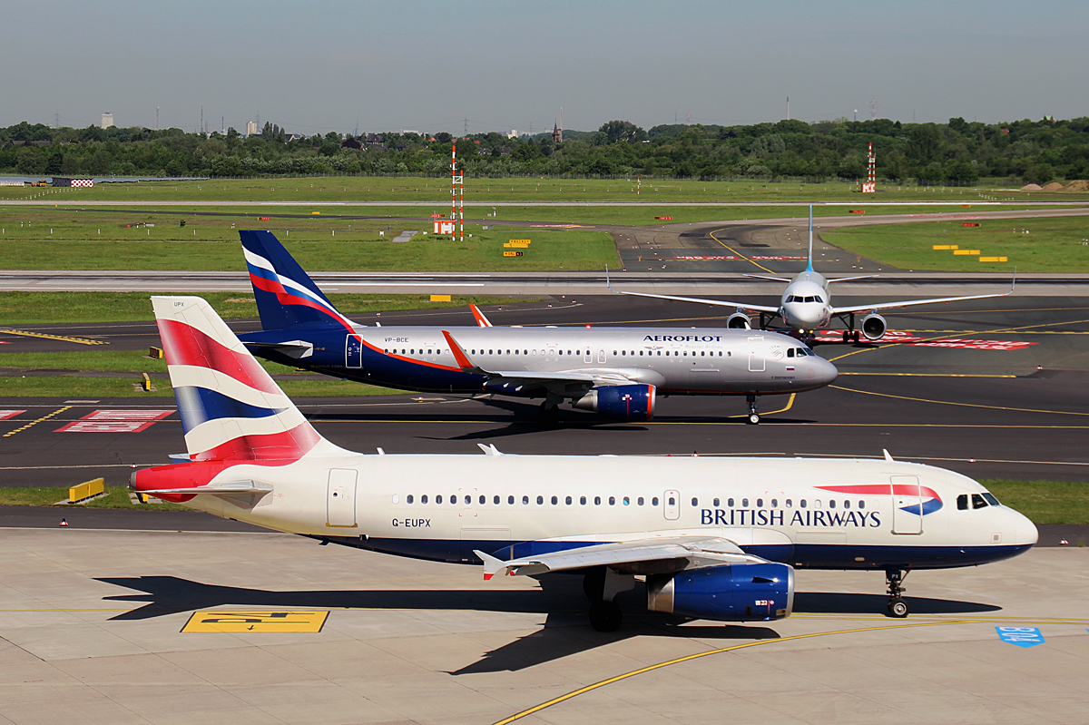 British Airways, Airbus A 319-131, G-EUPX, Aeroflot Airbus A 320-214, VP-BCE, Eurowings, Airbus A 320-214, D-AEWW, DUS, 17.05.2017