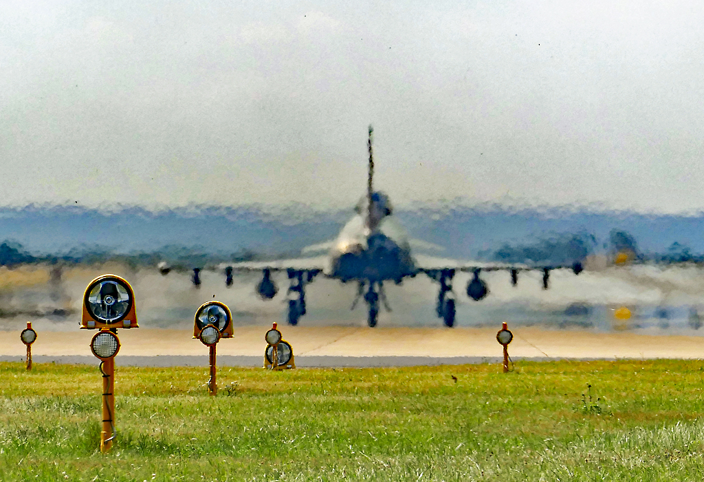 Eurofighter 31+31 der Luftwaffe startet mit Abgas-Hitzeflimmern in Nörvenich - 05.07.2017