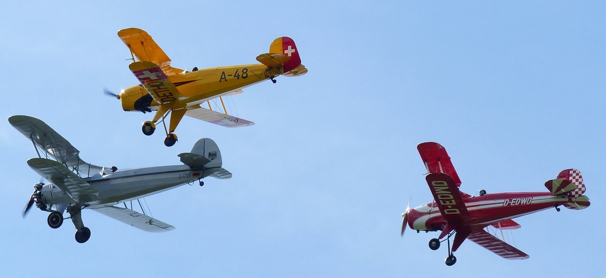 Focke-Wulf FW-44J Stieglitz, D-ETUF und 2 Bücker BÜ-131 D-ETHO und D-EDWD im Verband über Gera (EDAJ) am 20.5.2015