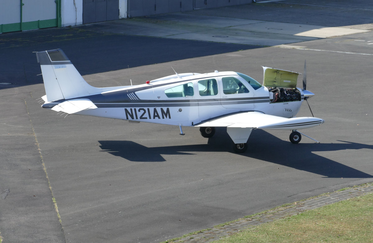 Beech F 33 A Bonanza, N121AM mit offener Motorhaube in EDKB - 13.03.2017