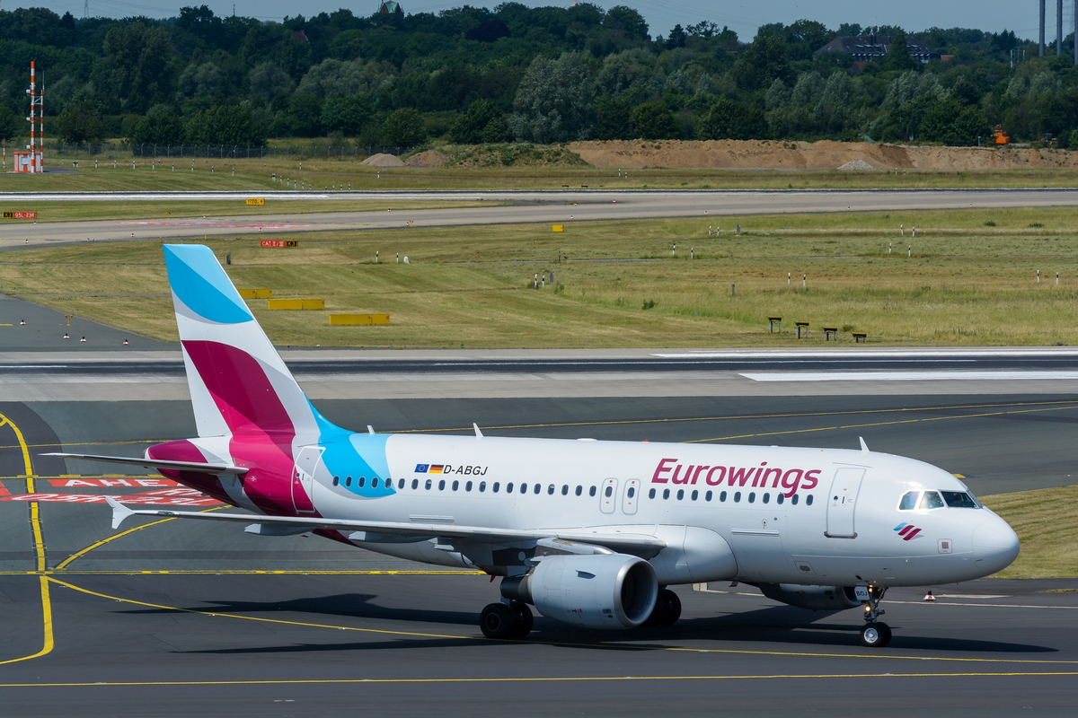 Eurowings (operated by Air Berlin) Airbus A319-112 D-ABGJ am 11.06.2017 in Düsseldorf.