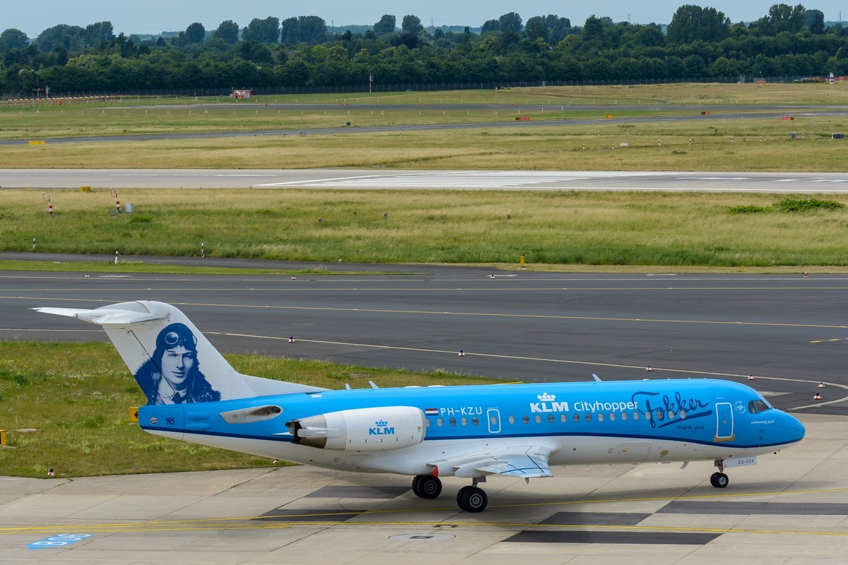 KLM Cityhopper Fokker F70 (F28-0070) PH-KZU "Anthony Fokker cs" am 11.06.2017 in Düsseldorf.