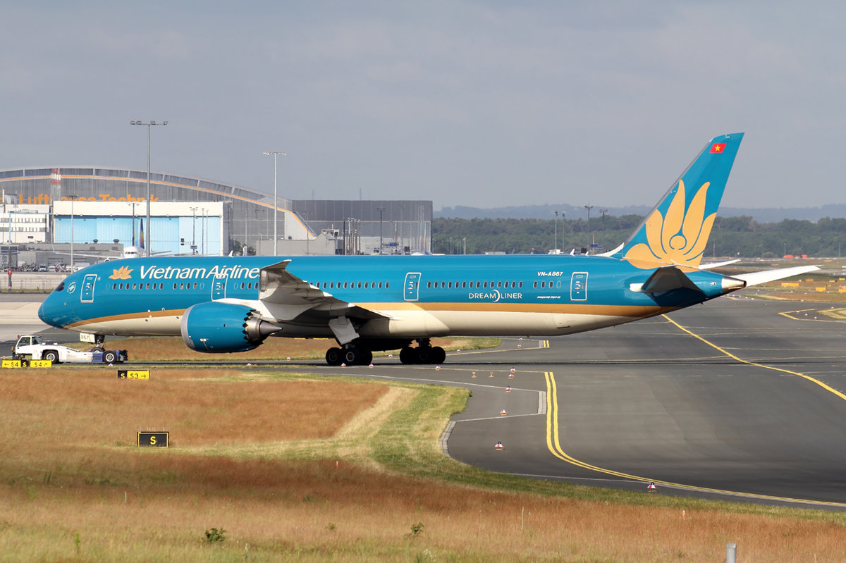 Vietnam Airlines Boeing 787-9 Dreamliner VN-A867 wird zur Abstellposition in Frankfurt geschleppt 7.6.2017