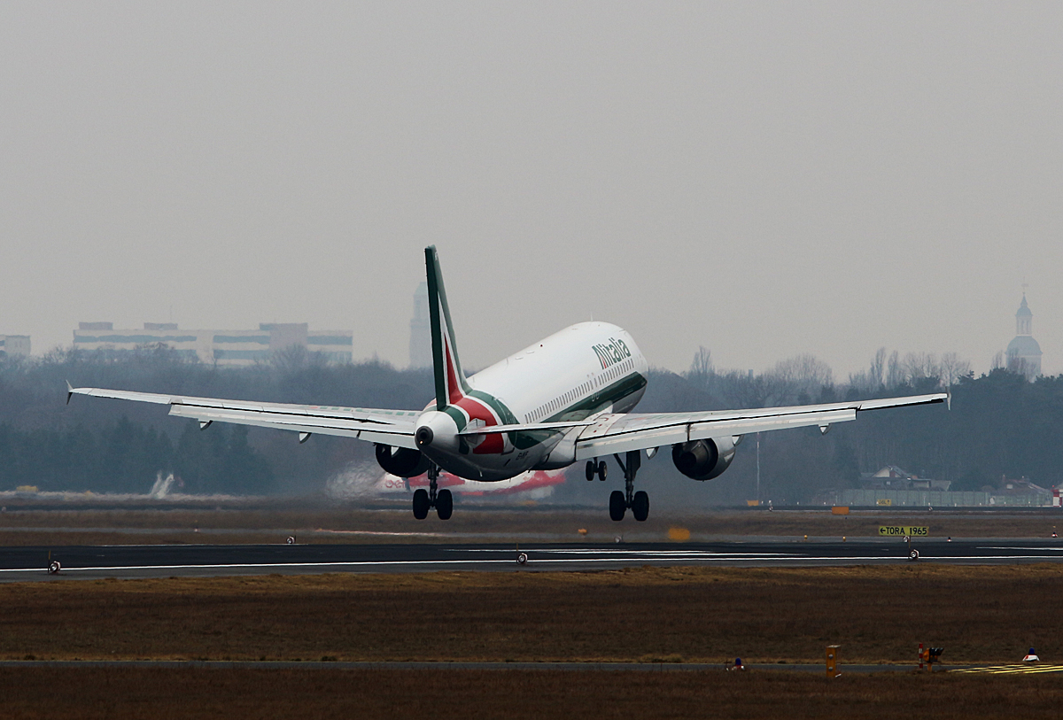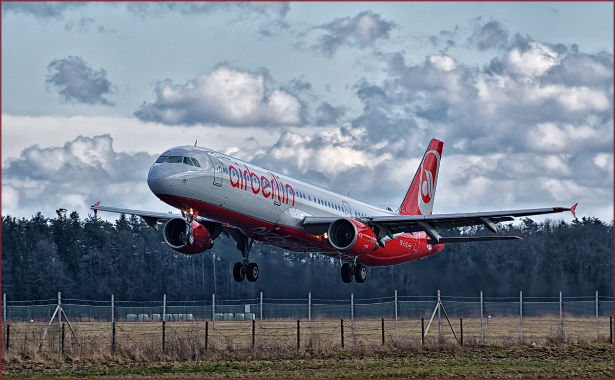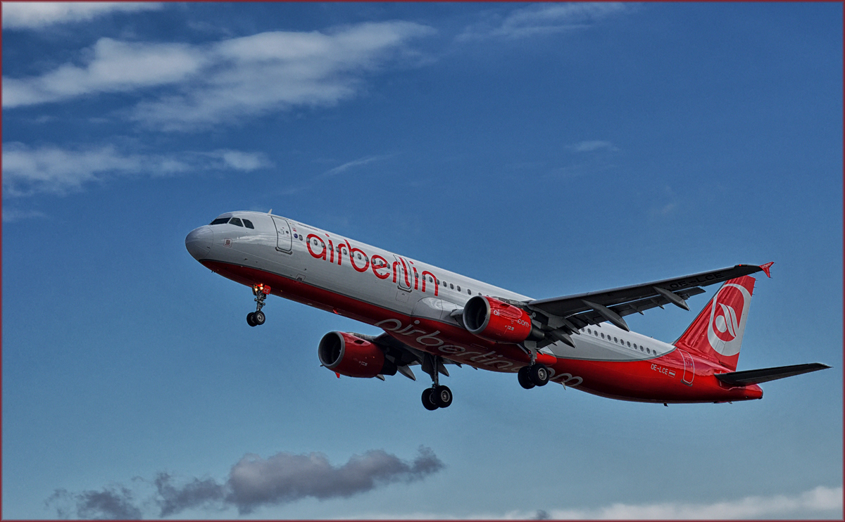 AirBerlin OE-LCE, Airbus A321-211 beim Start auf Maribor Flughafen MBX. /6.3.2017