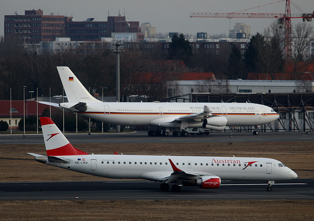 Austrian Airlines, ERJ-195-200LR, OE-LWA, Germany Air Force, Airbus A 340-313X, 16+02, TXL, 04.03.2017