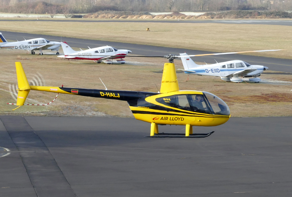 R 44 Astro, D-HALJ der Fa. Air Lloyd hovert zum Startpunkt in EDKB - 18.01.2017