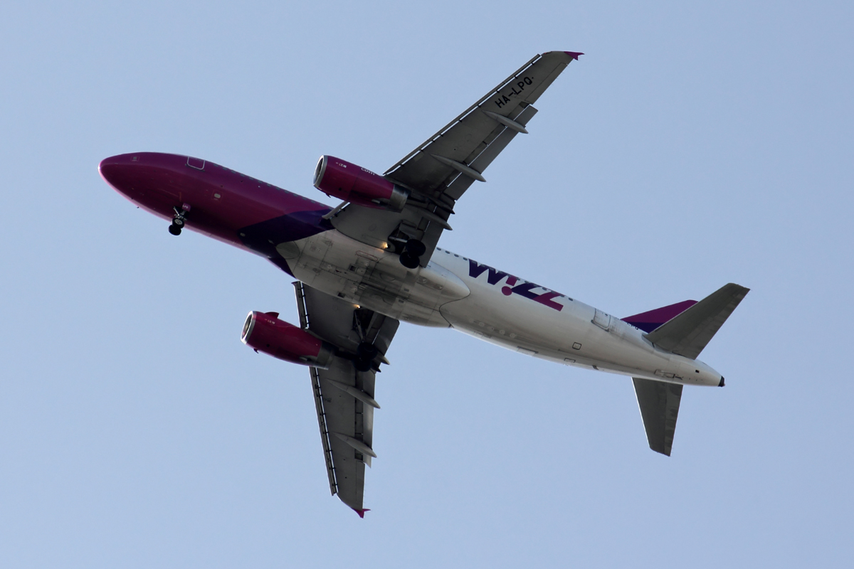 Wizz Air Airbus A320-232 HA-LPQ über dem Dortmunder Hbf. aus Riga (RIX) kommend im Anflug auf den Dortmunder (DTM) Flughafen 12.3.2017
