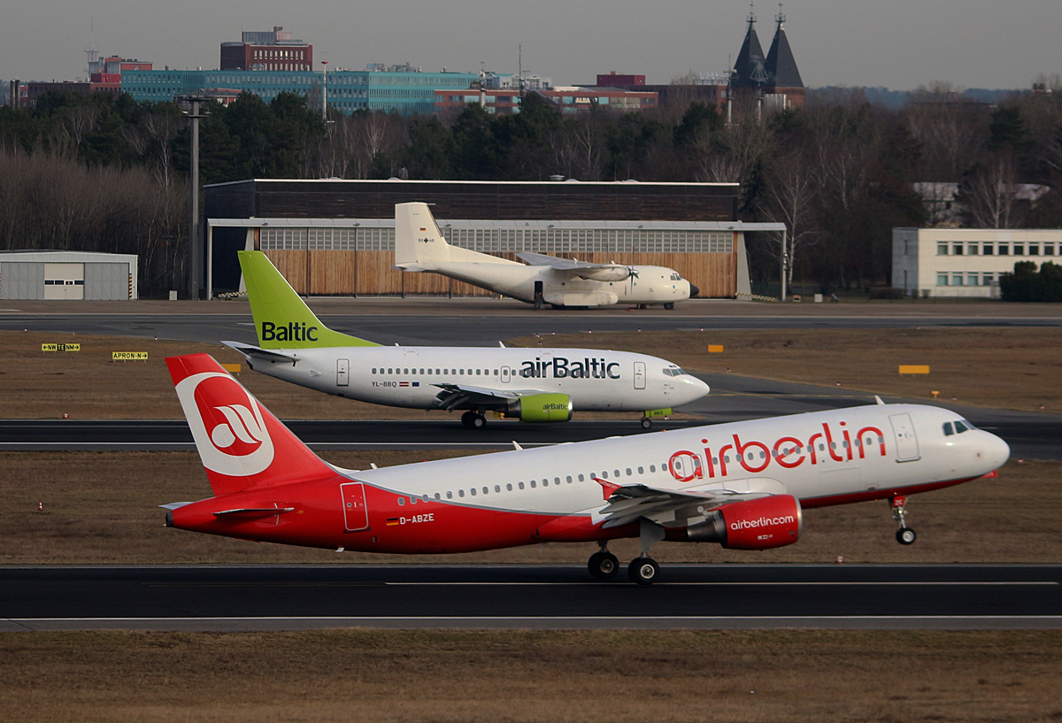 Air Berlin, Airbus A 320-216, D-ABZE, Air Baltic, Boeing B 737-522, Germany Air Force, C-160D, 50+48, TXL, 04.03.2017
