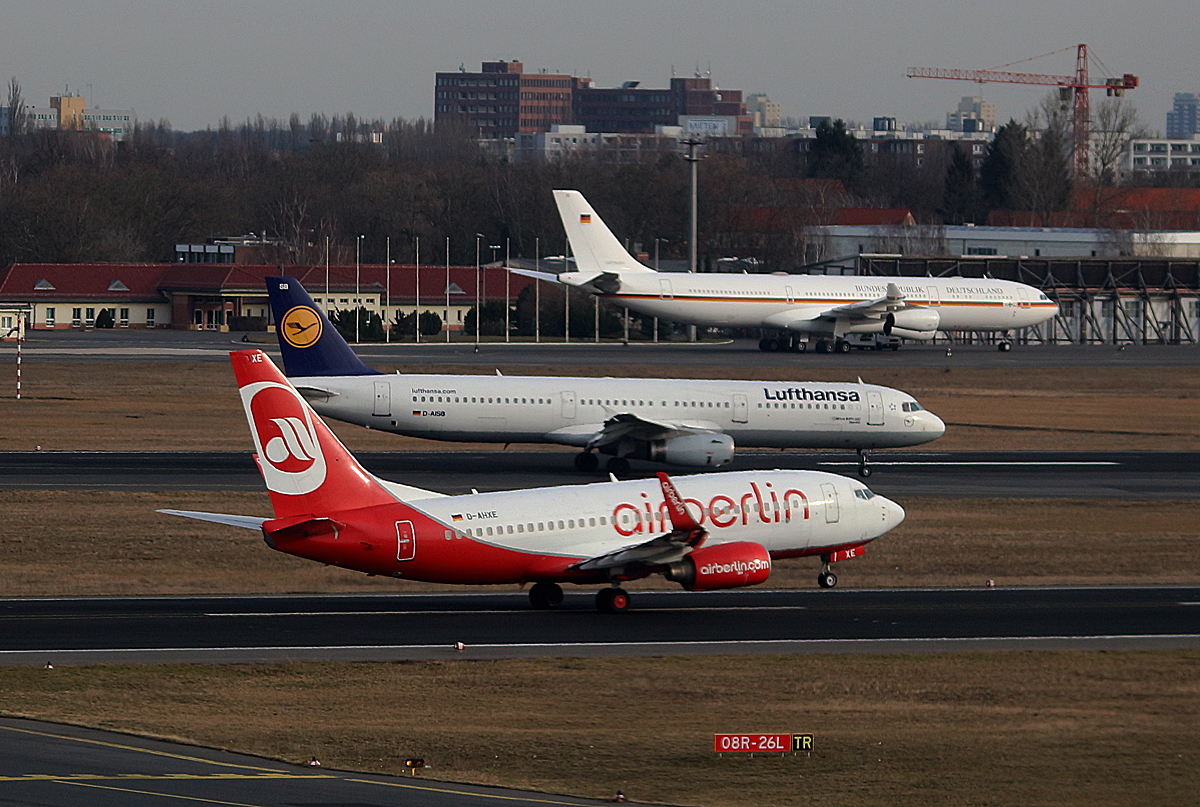 Air Berlin, Boeing B 737-7K5, D-AHXJ, Lufthansa, Airbus A 321-231, D-AISB, Germany Air Force, Airbus A 340-313X, 16+02, TXL, 04.03.2017