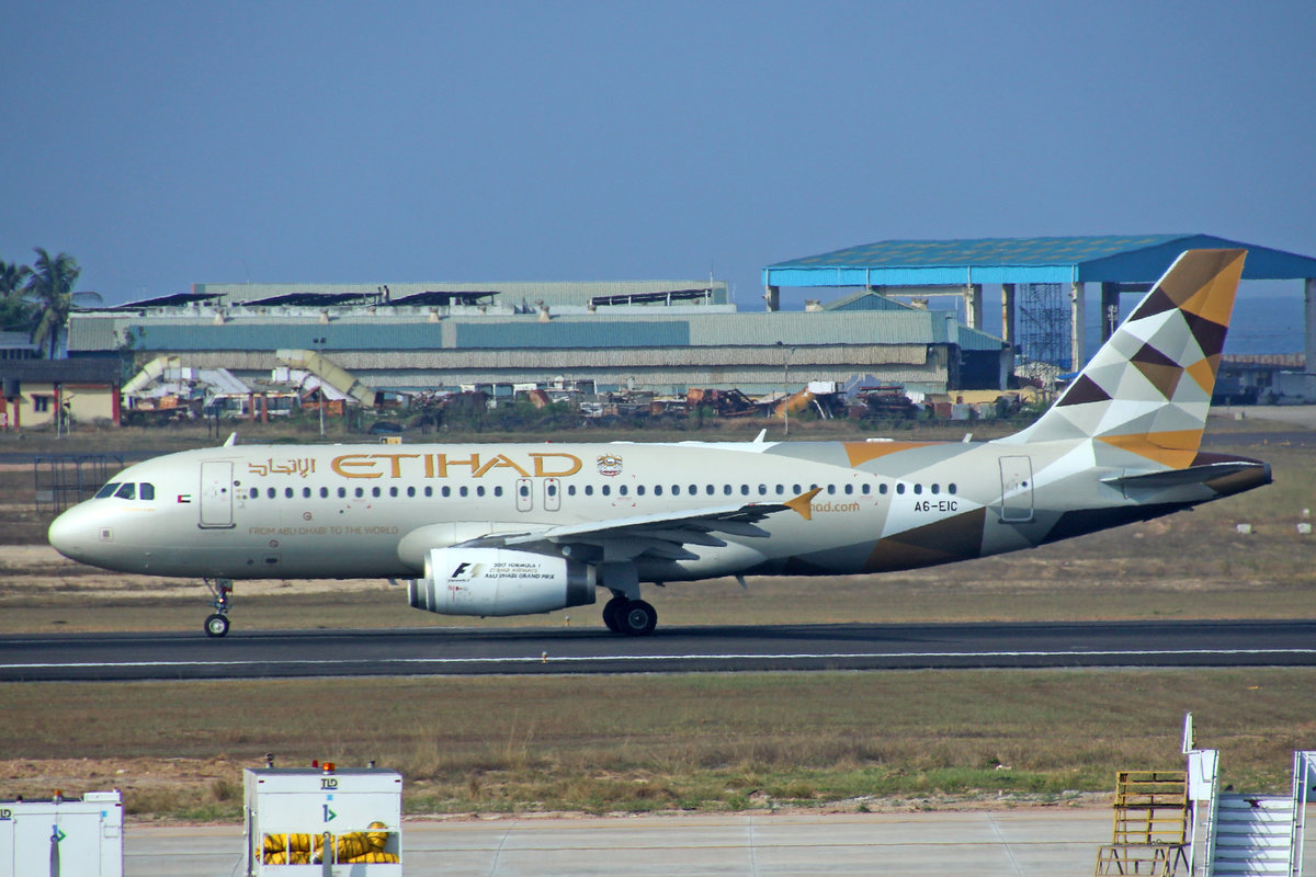 Etihad Airways, A6-EIC, Airbus A320-232, 11.März 2017, TRV Trivandrum, India.