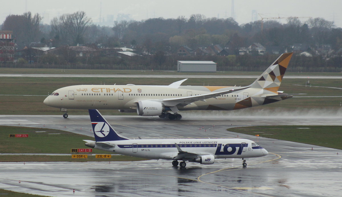LOT,SP-LIL,(c/n 170000306),ERJ170-200LR & Etihad, A6-BLK, (c/n 39654),Boeing 787-9 Dreamliner, 18.03.2017, DUS-EDDL, Düsseldorf, Germany