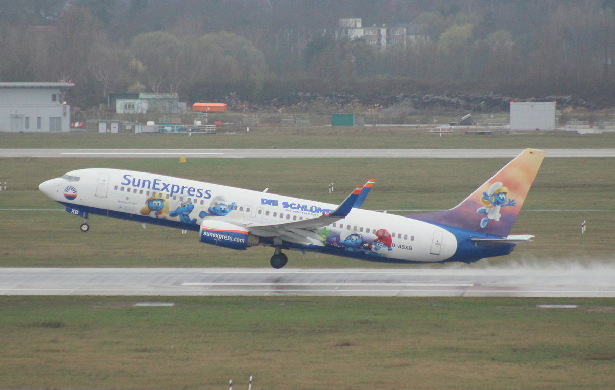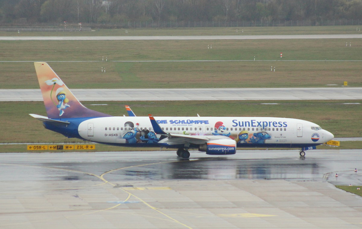 Sun Express Germany, D-ASXB, (c/n 30420),Boeing 737-8Z9(WL), 18.03.2017, DUS-EDDL, Düsseldorf, Germany (Die Schlümpfe-Das verlorene Dorf livery)