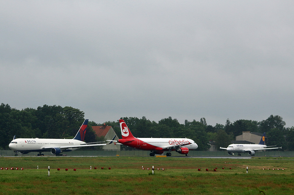 Delta Airlines, Boeing B 767-332(ER), N198DN, Air Berlin, Airbus A 320-214, D-ABFA, Lufthansa, Airbus A 320-211, D-AIPL "Ludwigshafen am Rhein", TXL, 04.06.2017