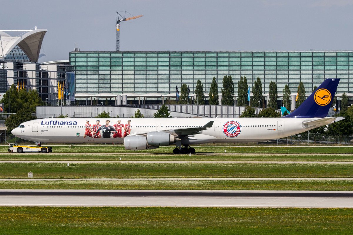 Lufthansa (LH-DLH), D-AIHZ "Leipzig", Airbus, A 340-642 (FC Bayern München-Sticker), 22.08.2017, MUC-EDDM, München, Germany