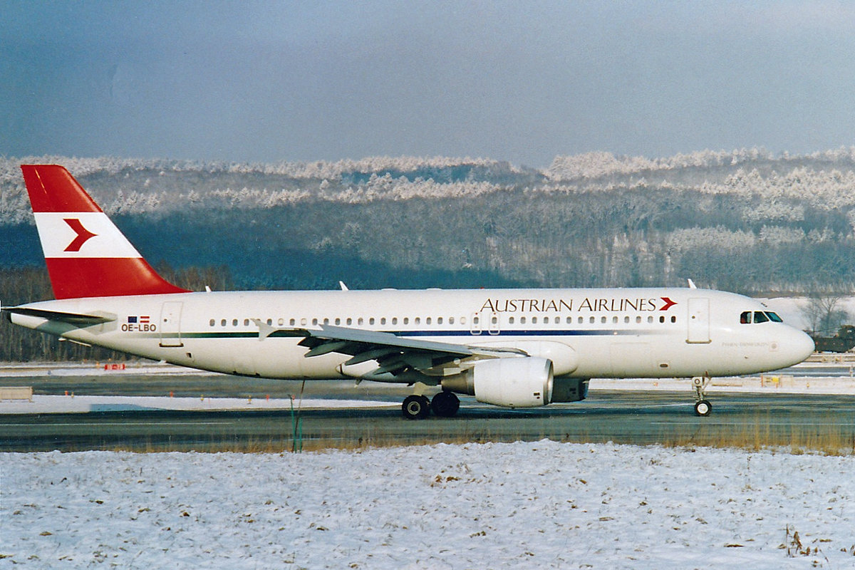 Austrian Airlines, OE-LBO, Airbus A320-214, msn: 776, "Pyhrn-Eisenwurzen", Januar 2000, ZRH Zürich, Switzerland.
