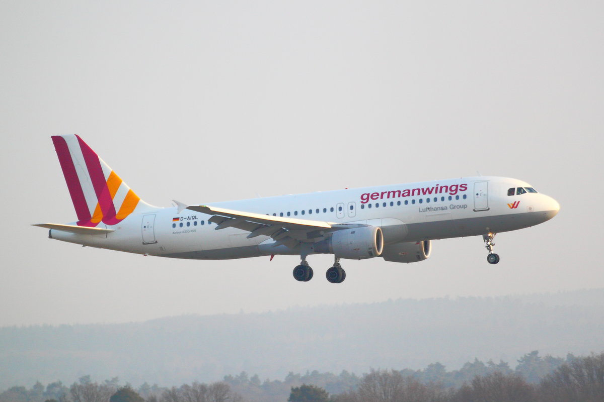 Germanwings, Airbus A319-211, D-AIQL. Aus Berlin-Tegel (TXL) kommend im Endanflug auf Köln-Bonn (CGN/EDDK) am 20.02.2018.