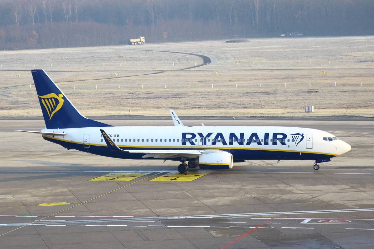 Ryanair, Boeing B737-8AS, EI-FTC, rollt zum Start nach Bergamo (BGY). Köln-Bonn (CGN/EDDK) am 20.02.2018).