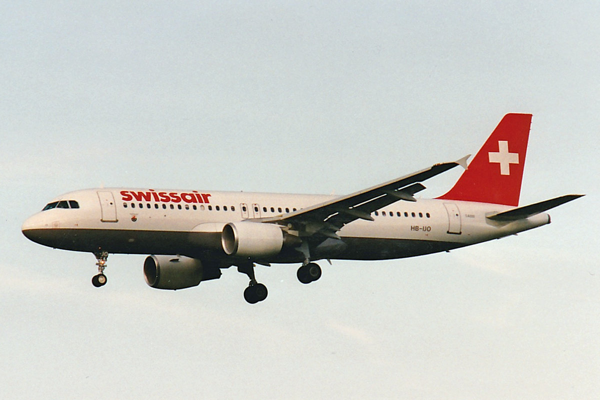 SWISSAIR, HB-IJO, Airbus A320-214, msn: 673, "Grand Saconnex", Mai 1997, ZRH Zürich, Switzerland. Scan aus der Mottenkiste.