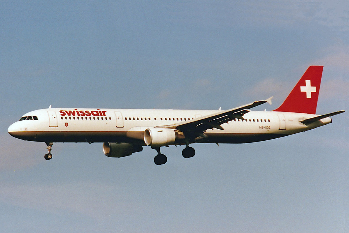 SWISSAIR, HB-IOG, Airbus A321-111, msn: 642, "Bülach", Mai 1999, ZRH Zürich, Switzerland. Scan aus der Mottenkiste.
