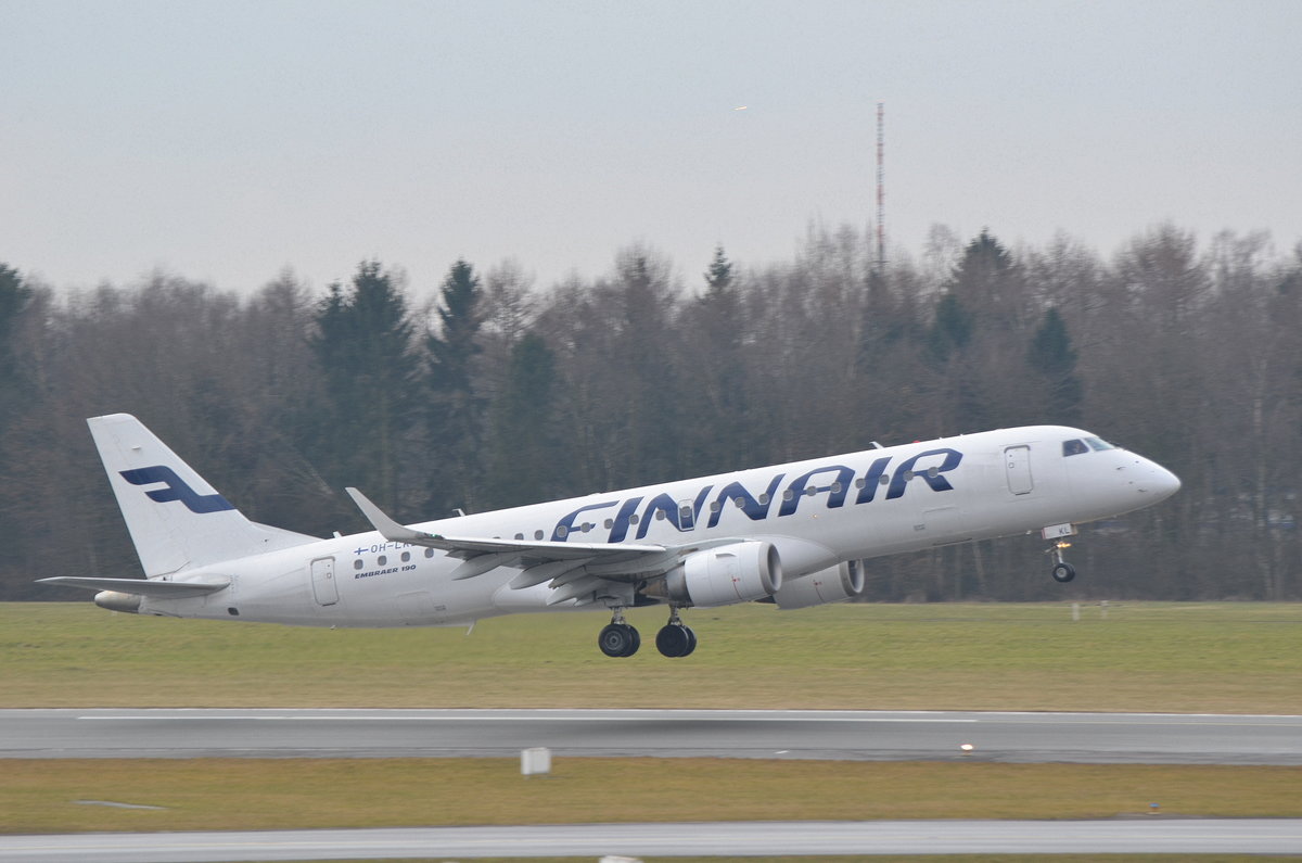 Finnair Embraer 190LR OH-LKL am 22.02.18 beim Start am Airport Hamburg Helmut Schmidt aufgenommen.