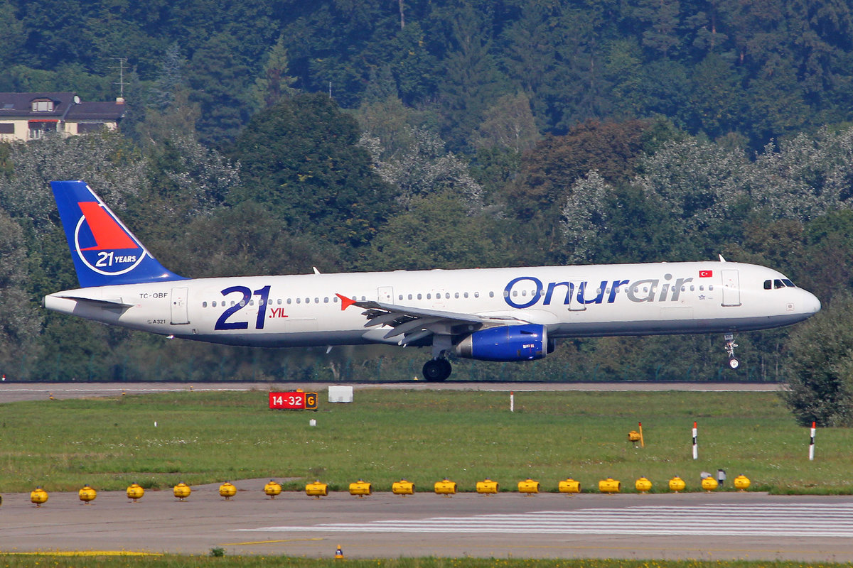 Onur Air, TC-OBF, Airbus A321-131, msn: 963, 24.September 2013, ZRH Zürich, Switzerland.