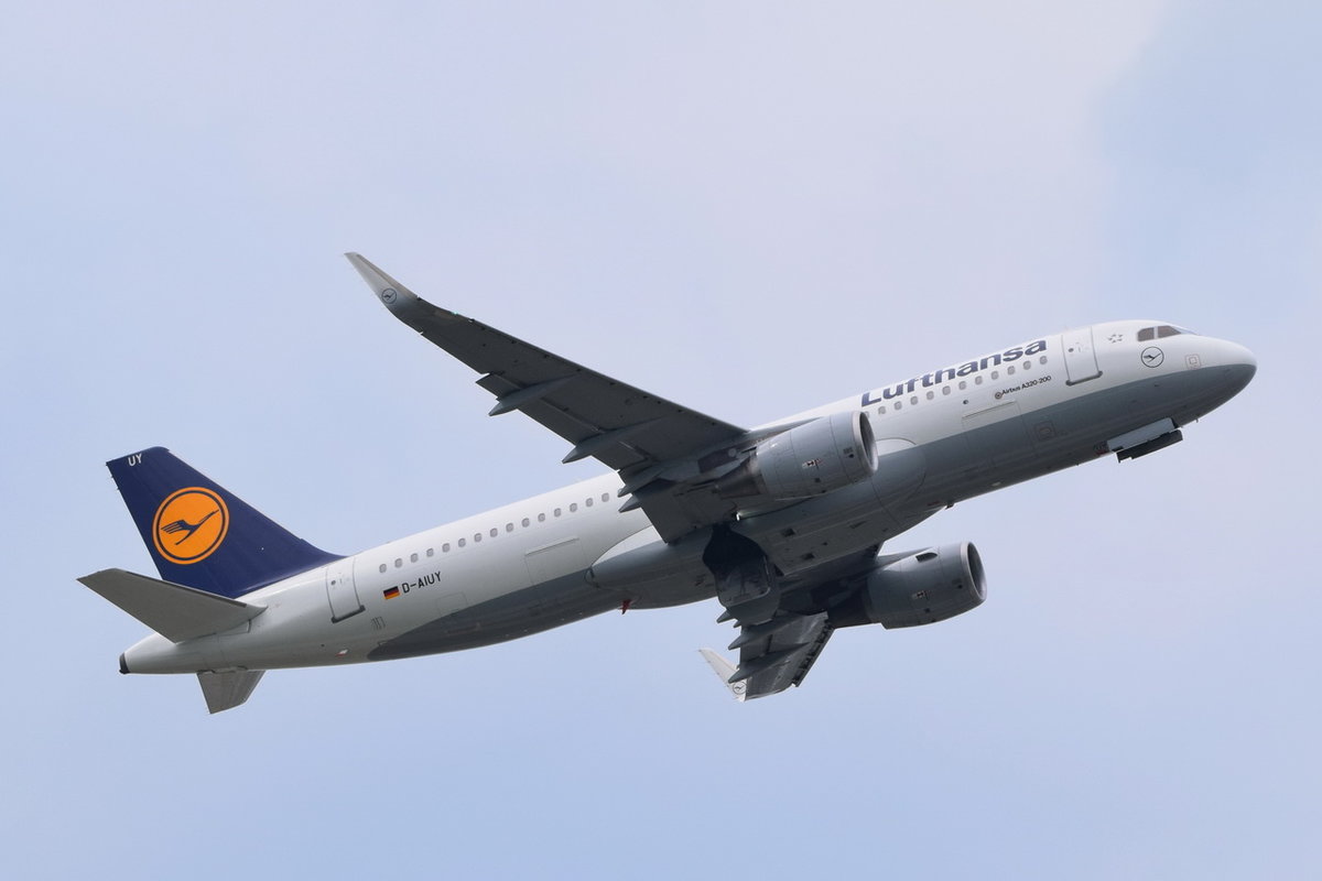 Ein Airbus A320neo (D-AIND | 7078) der Lufthansa AG fliegt über Dieskau (Gemeinde Kabelsketal). [4.2.2018 | 13:40 Uhr]