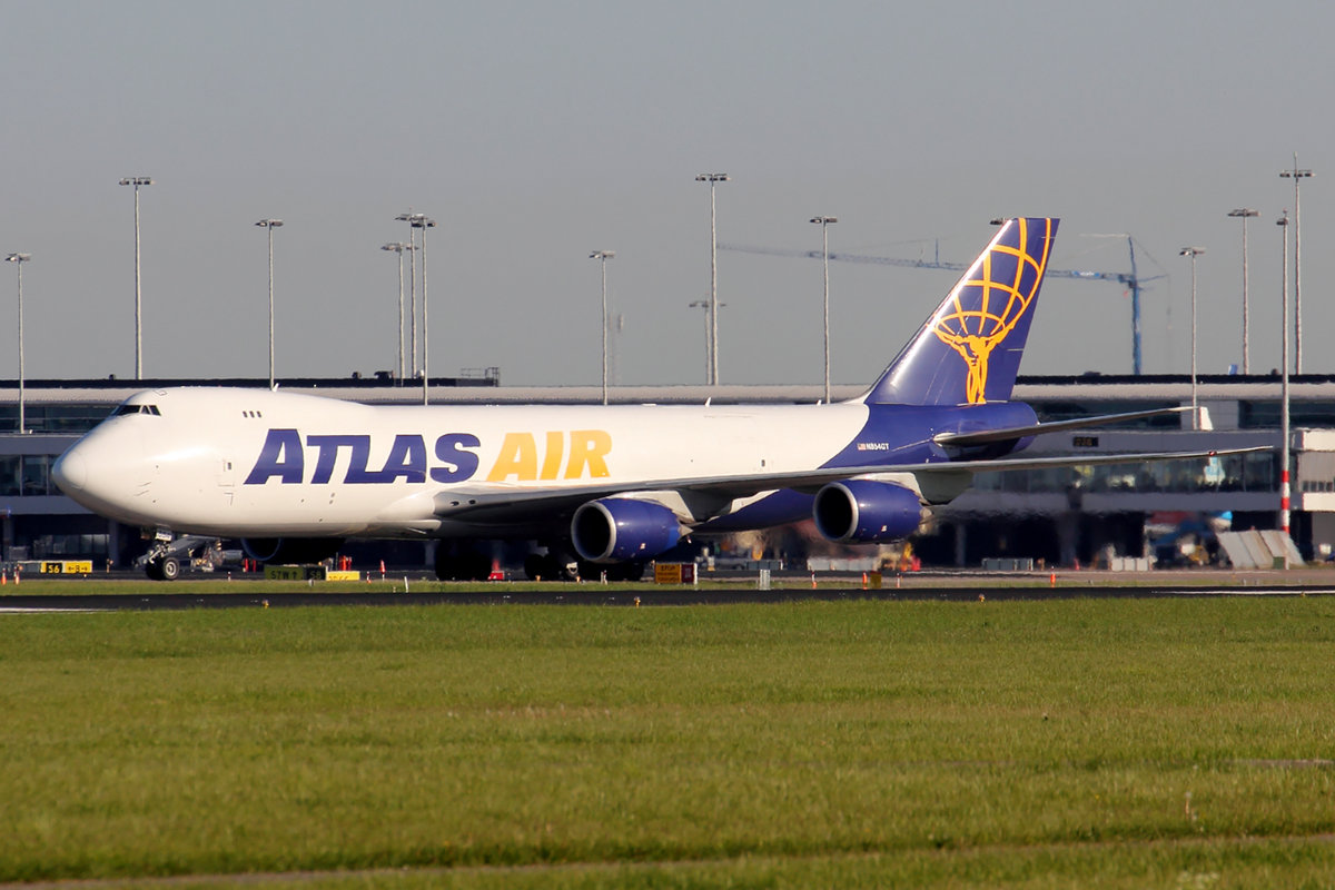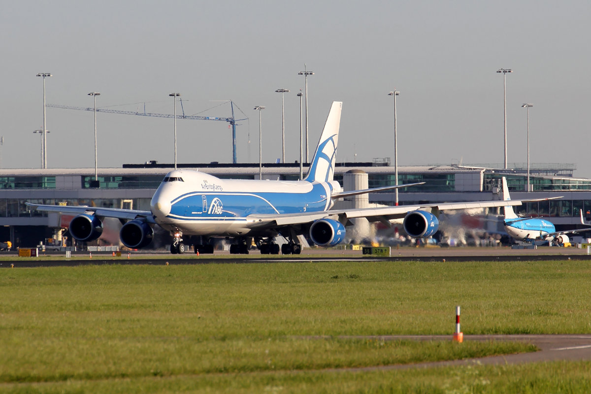 Air Bridge Cargo Boeing 747-8HVF VQ-BRJ rollt zur Parkposition in Amsterdam 6.5.2018