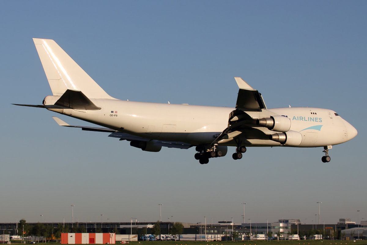 ASL Airlines Belgium Boeing 747-4B5FER OE-IFB bei der Landung in Amsterdam 6.5.2018