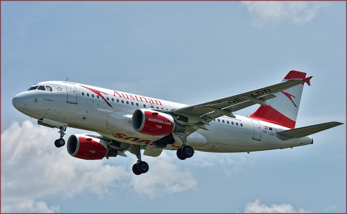 Austrian Airlines Airbus A320 OE-LBV Weinviertel im Landeanflug auf den Airport Hamburg Helmut Schmidt am 21.05.18