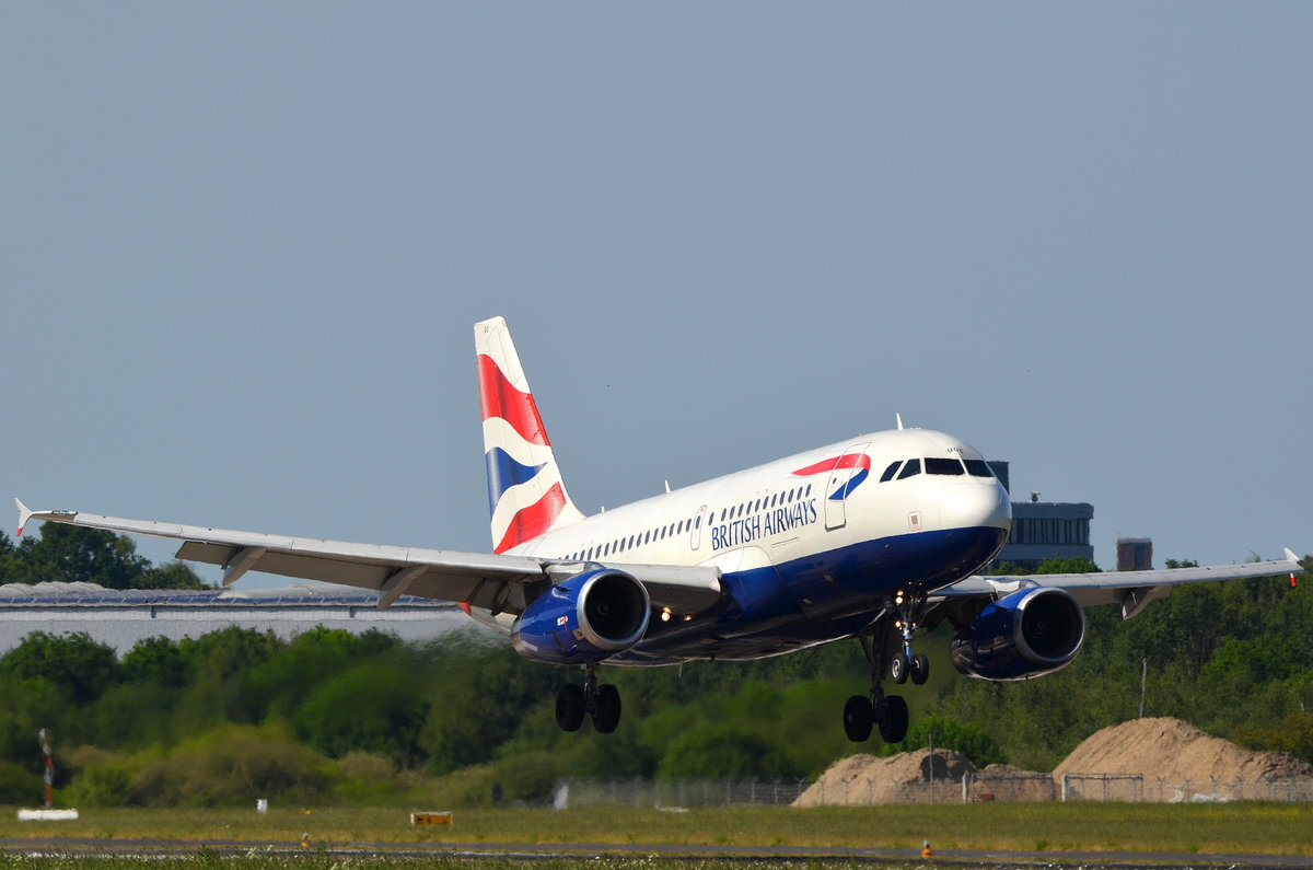 British Airways Airbus A319 G-EUOC bei der Landung am Airport Hamburg Helmut Schmidt am 21.05.18