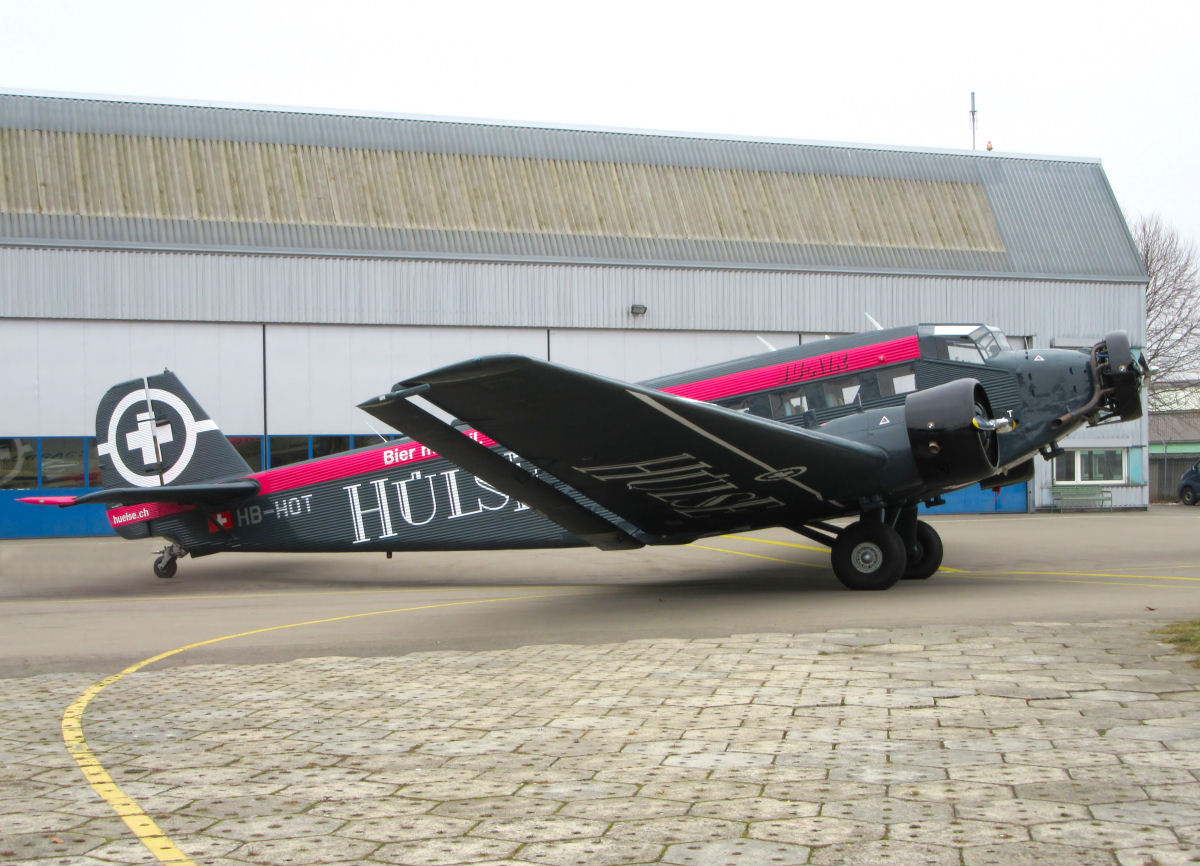 Die ehemalig in Rimowa Werbung (engl) JU-52 HB-HOT.