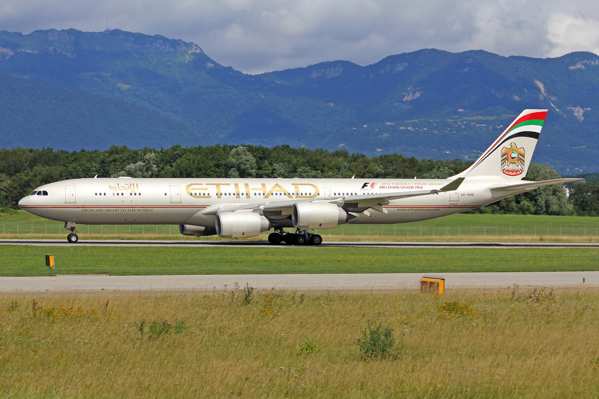 Etihad Airways, A6-EHD, Airbus A340-541, msn: 783, 12.Juli 2012, GVA Genève, Switzerland.