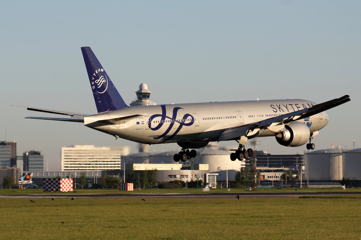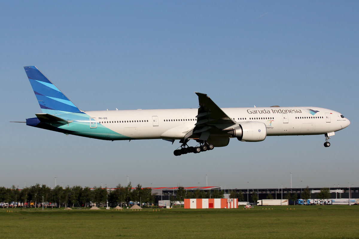 Garuda Indonesia Boeing 777-3U3ER PK-GIE bei der Landung in Amsterdam 6.5.2018