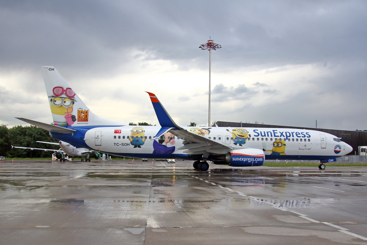 Sun Express, TC-SOH, Boeing 737-8HC, msn: 61193/6398, Minions livery, 21.Mai 2018, ZRH Zürich, Switzerland.