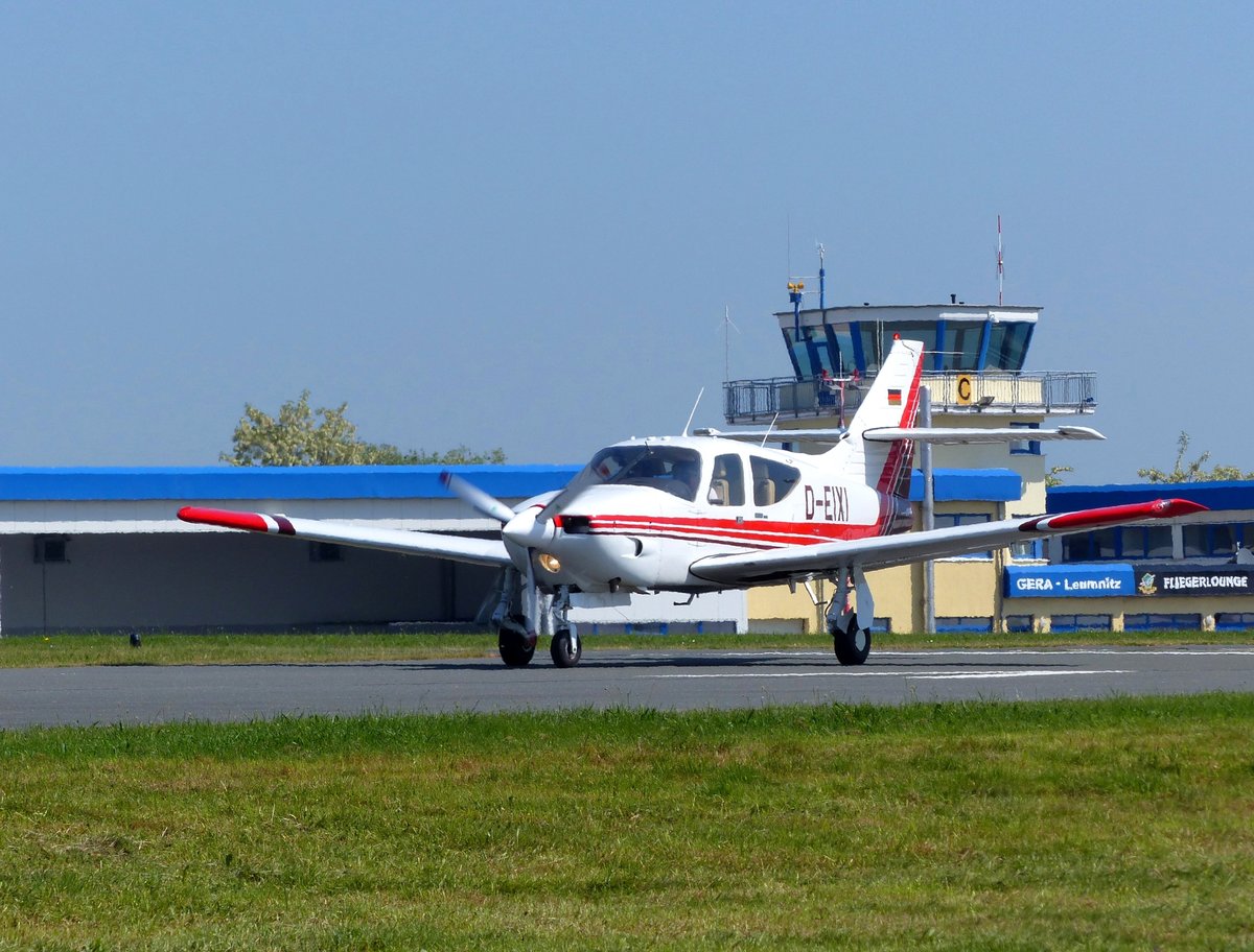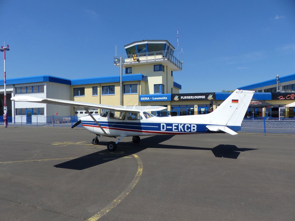 Cessna 172N Skyhawk, D-EKCB, vor dem Tower am Flugplatz Gera (EDAJ). 20.5.2018