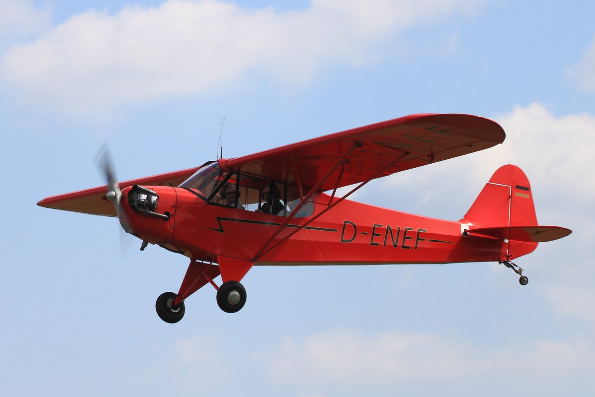 D-ENEF, Piper J3C Cub der Sportfliegergruppe Schwenningen. Gesehen beim Tag der offenen Tür des FSV Ailertchen am 19.05.2018.