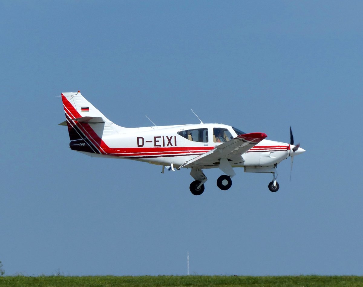 Rockwell Commander 114, D-EIXI bei der Landung auf der Piste 06 in Gera (EDAJ) am 20.5.2018