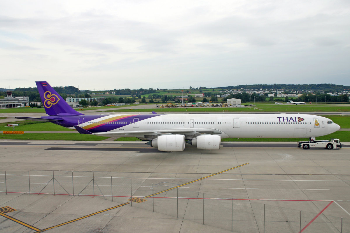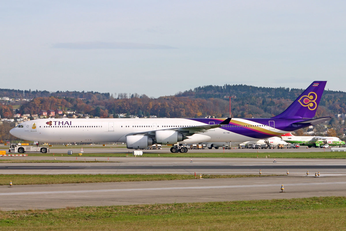 Thai Airways, HS-TNC, Airbus A340-642, msn: 689, "Chon Buri", 06.September 2008, ZRH Zürich, Switzerland.