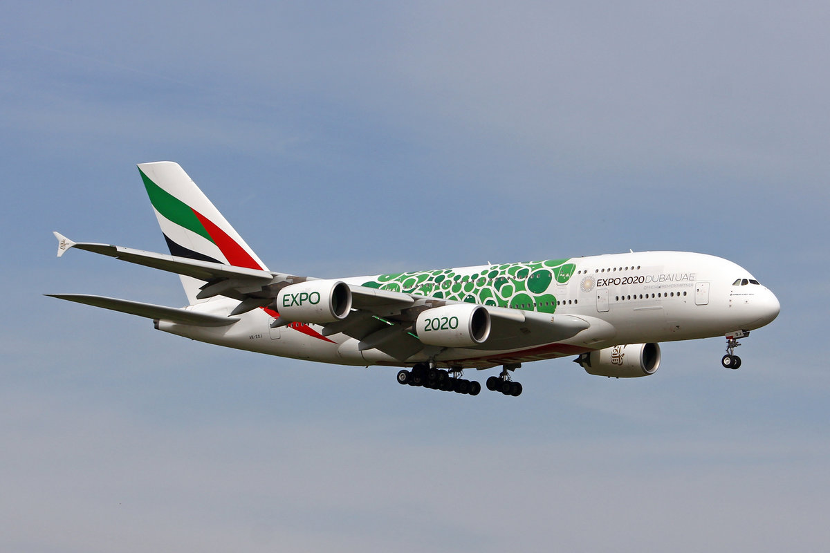 Emirates Airlines, A6-EOJ, Airbus A380-861, msn: 182, Green EXPO 2020 livery, 10.September 2018, ZRH Zürich, Switzerland.
