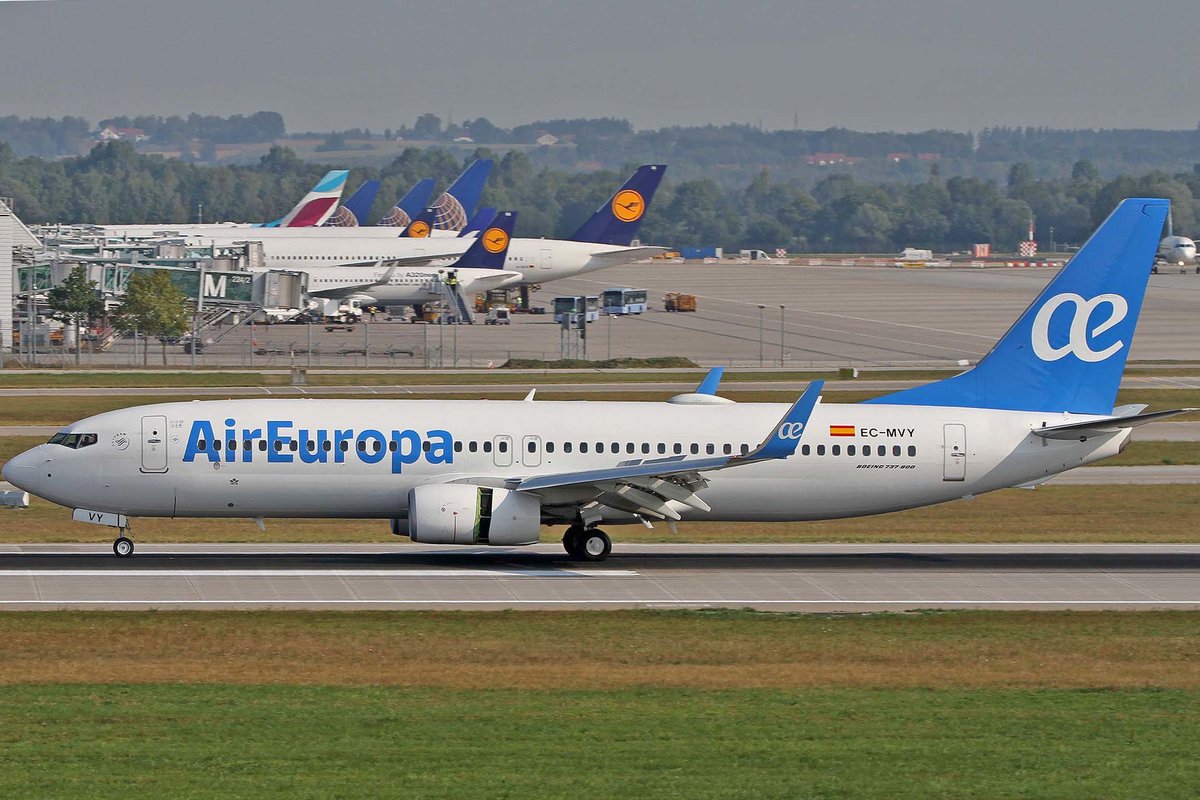 Air Europa, EC-MVY, Boeing, 737-85P wl, ~ blaues Tail und Titel, MUC-EDDM, München, 20.08.2018, Germany