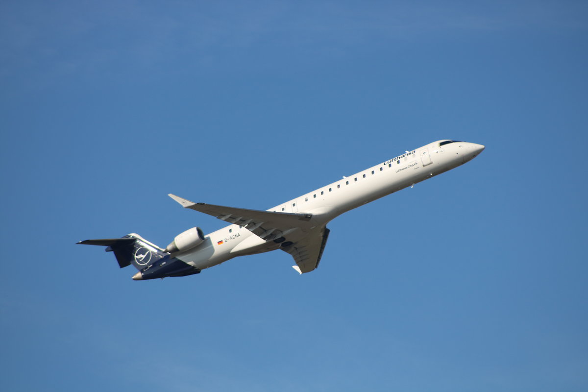 Ein CRJ700 D-ACNA der Lufthansa in neuer Lackierung verlässt den Flughafen Düsseldorf am 20.10.18