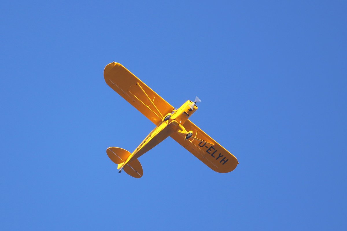 Eine Piper PA-18-95 Super Cub, D-ELYH, gesehen bei Oppenweiler. Aufgenommen am 22.10.18.