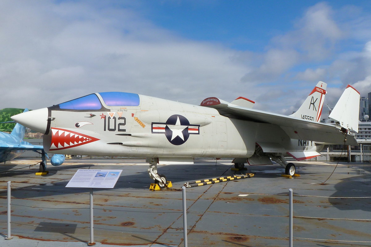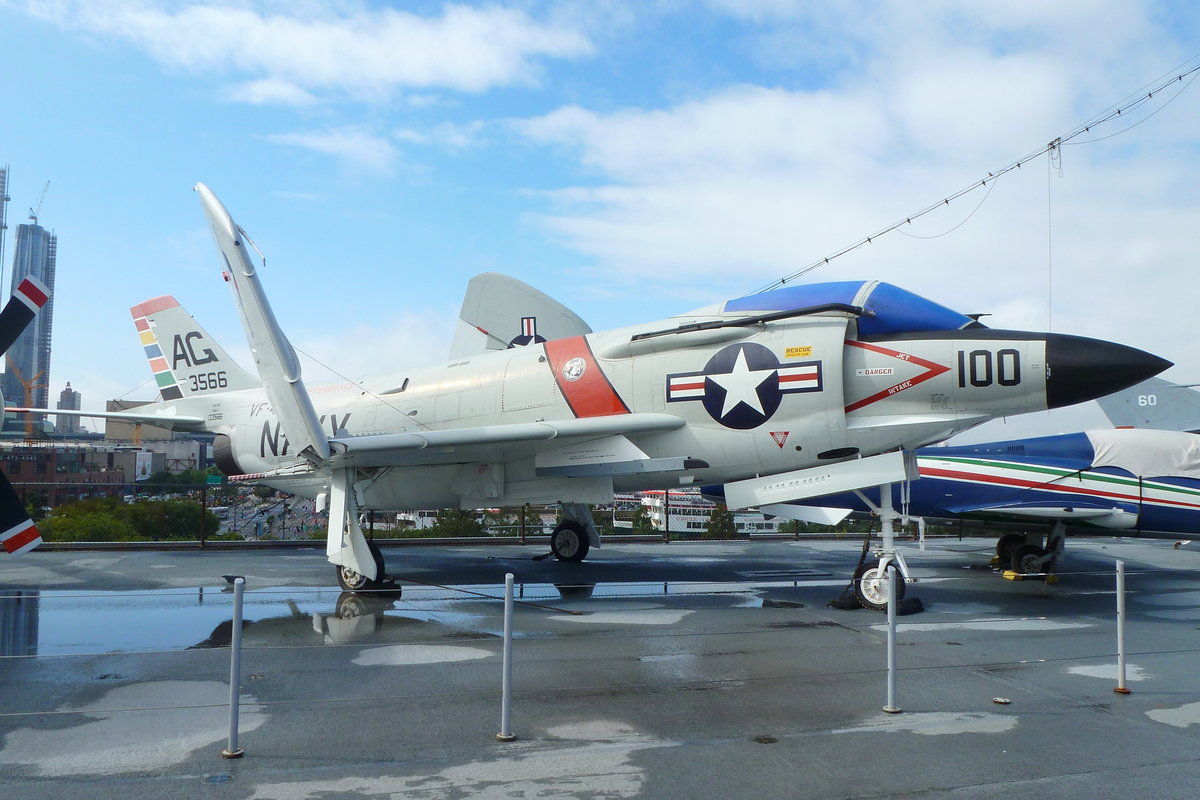 Chance Vought (F8U) F-8K Crusader, AK 145550. Schwenkflügel-Jagdflugzeug der US Navy. Intrepid Sea, Air & Space Museum, New York-Manhattan. Aufnahmedatum: 26.09.2018.