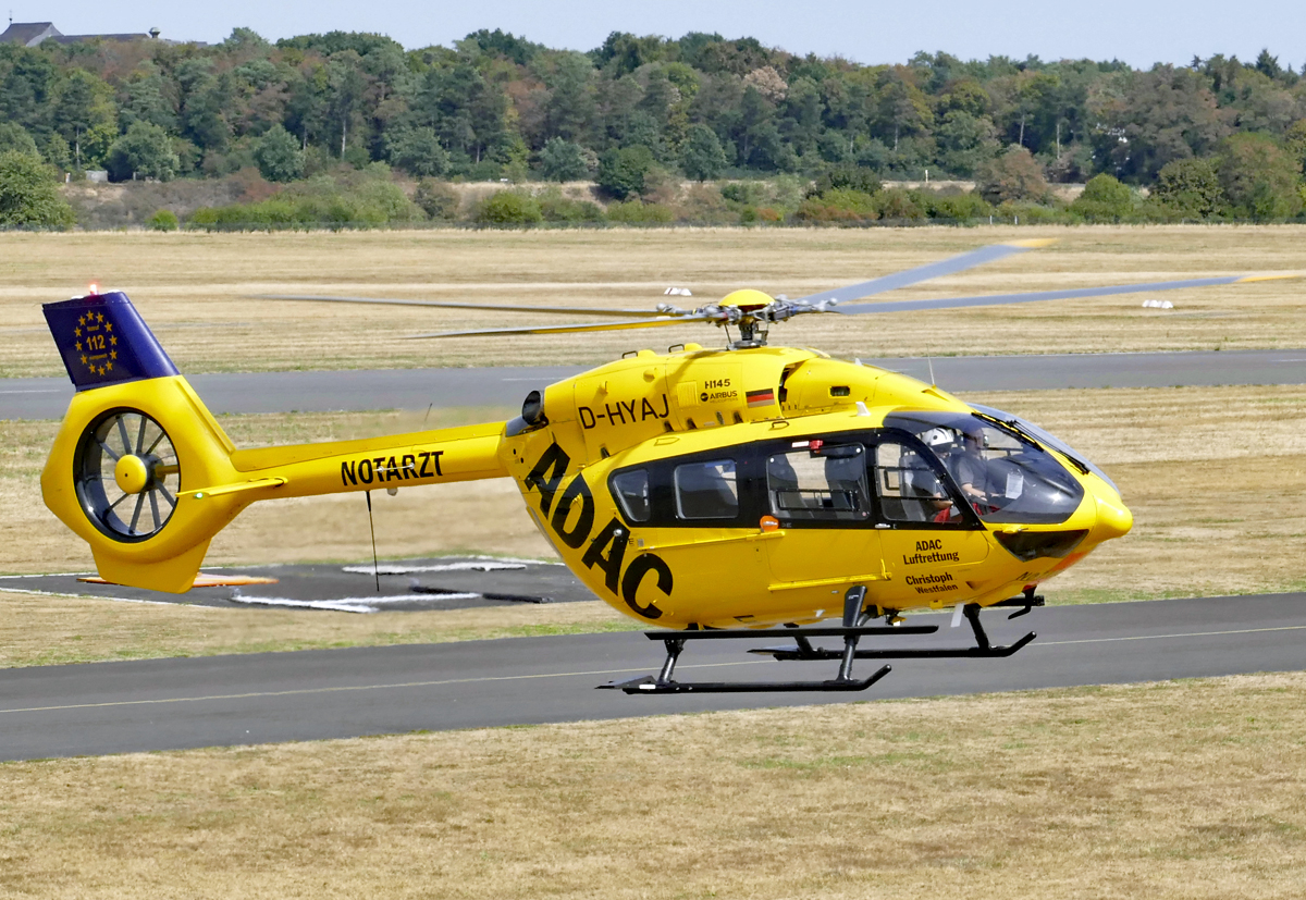 Airbus H 145, D-HYAJ ADAC Christoph Westfalen bei der Rückkehr vom Werkstattflug in Bonn-Hangelar - 16.08.2018