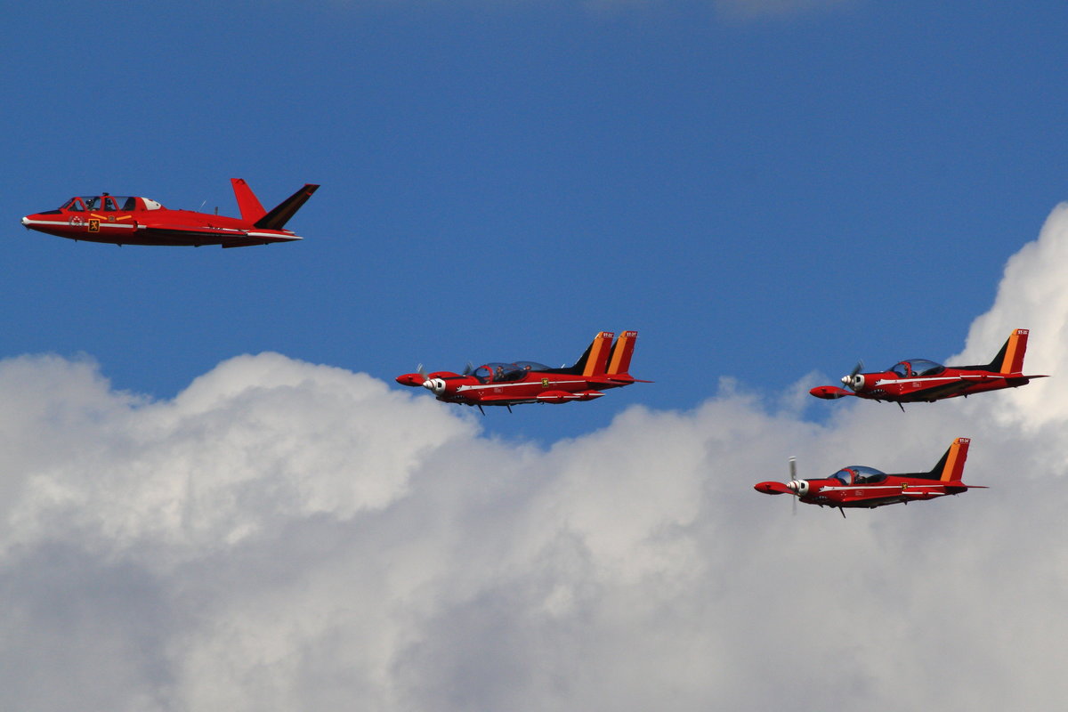 BAF Red Devils (4xSIAI Marchetti SF260) und eine Fouga CM-170 Magister. Belgian Air Force Days, 07.09.2018, Kleine Brogel Airbase.