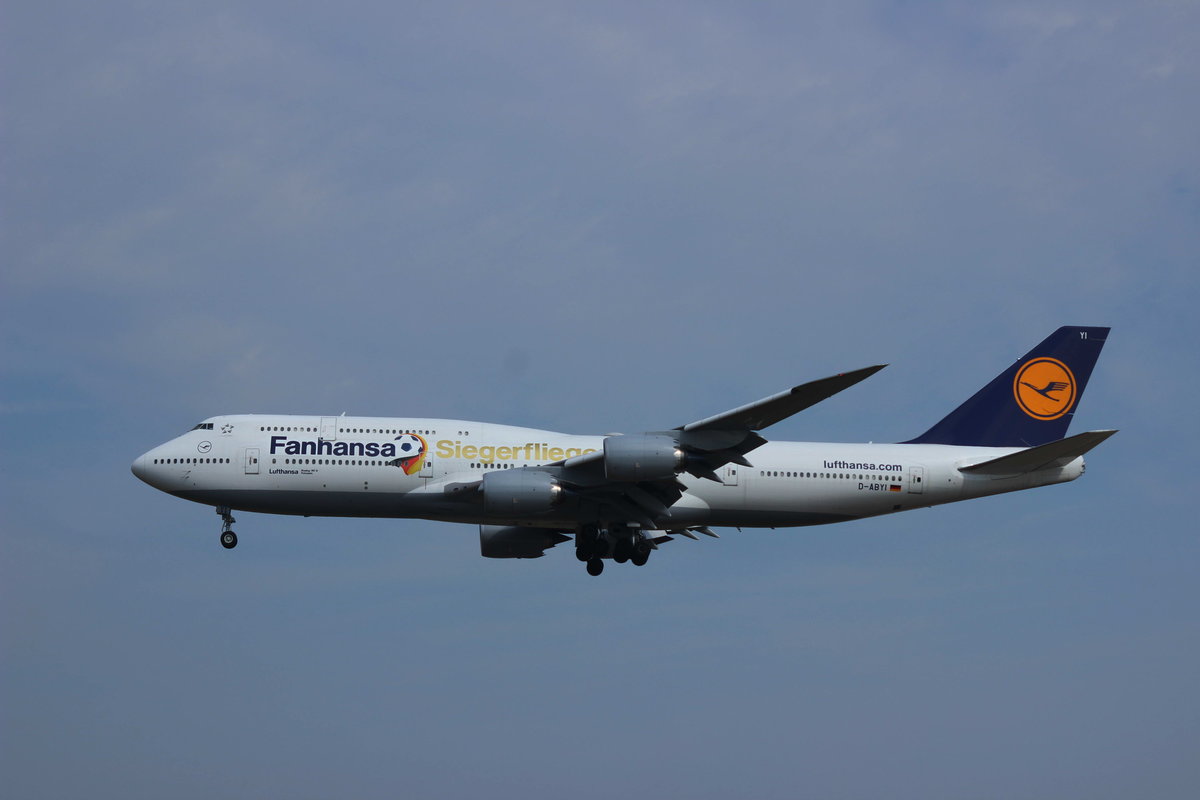 Der Siegerflieger der Lufthansa, in Form einer Boeing 747-8 D-ABYI ließ sich am 28.7.14 ebenfalls in Frankfurt blicken.
